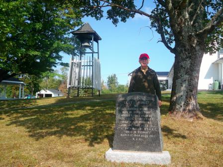 Two Stordy brothers are listed on the memorial outside St. Joseph’s Roman Catholic Church in Kelly’s Cross, behind which Pieter is standing. (Photo credit: Daria Valkenburg)