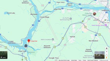 Kingsclear is near Fredericton, New Brunswick. (Map source: Google maps)