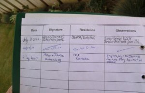CIMG8568 Sep 6 2017 guest register honouring Ted Arsenault & James Cairns at Manitoba Cemetery September 30, 2017September 30, 2017 / On The War Memorial Trail With Pieter & Daria