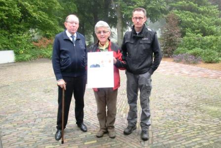 At the Woudenberg Municipal Cemetery. Left to right: Wout Blokhuis, Pieter with the plaque, Theo Imminkhuizen. (Photo credit: Daria Valkenburg)