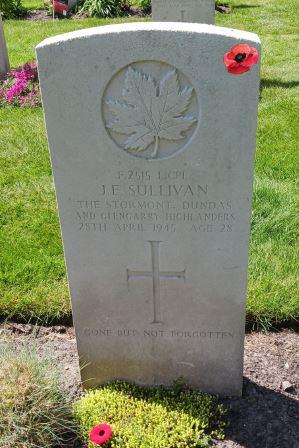 Grave of James Edward Sullivan in the Canadian War Cemetery in Holten, The Netherlands. (Photo courtesy of Canadian Virtual War Memorial)