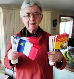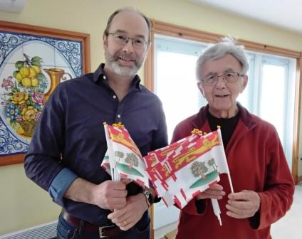 - New Brunswick and Acadian flags were provided by Jean-Claude D’Amours, MLA for Edmundston-Madawaska Centre, Minister responsible for Military Affairs, with the help of Cécile LePage, Province of New Brunswick, AND by Armel ‘Mel’ Lanteigne, President of the Caraquet Legion in New Brunswick