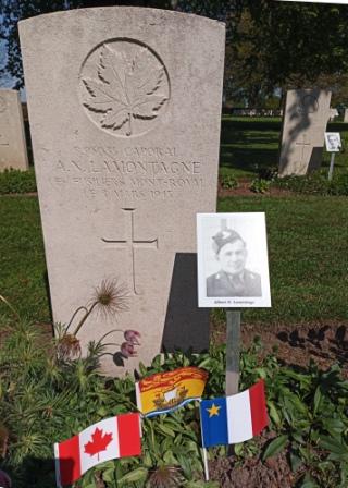 Gilles LANTEIGNE, of Caraquet, New Brunswick, was serving with Le Regiment de Maisonneuve in Germany, when he died of severe wounds on March 9, 1945, just a few weeks before his 21st birthday. You can read his story at https://onthewarmemorialtrail.com/2021/07/11/on-the-war-memorial-trail-atlantic-canada-remembers-part-10/