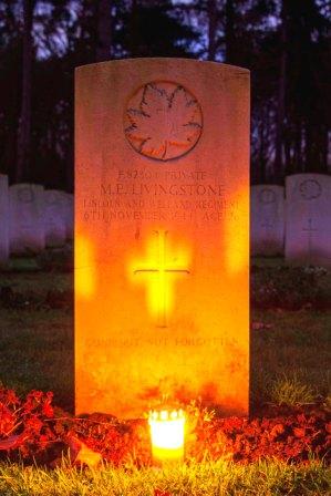 Candles were placed at all 1,119 graves at the Canadian War Cemetery in Bergen Op Zoom. 8 of them are featured in this posting….