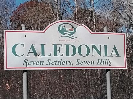 Sign for the community of Caledonia, Queen’s County, Nova Scotia. (Photo credit: Daria Valkenburg)
