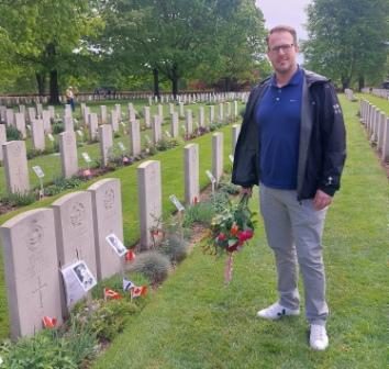 “…Since his visit I made it my personal goal to visit this grave every year around the 4th of May to bring flowers. I have two young kids that I bring with me as well, and we try to explain what happened and why it’s important to honour the men and women who are buried at the cemetery. Every year I send a picture to Graham with fresh flowers at the grave…..This year I was there as well, and I bumped into Saskia. The rest is history….”