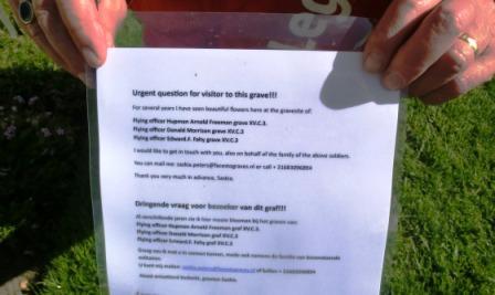 There was a surprise at his grave as we found a note from Saskia Peters, a member of the Faces To Graves Groesbeek Foundation Board, asking if whoever had been annually placing flowers at the grave to get in contact with her.