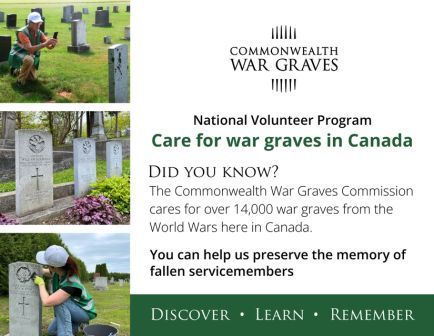 Postcard promoting CWGC’s National Volunteer Program included a photo of Pieter (top left) that Daria took at Cape Traverse Community Cemetery.
